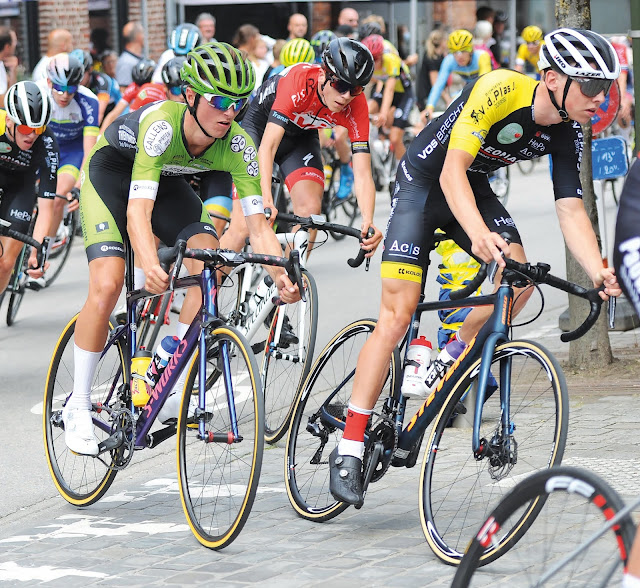Aaron DOCKX (rechts) aan de slag als wegrenner in Dikkebus 2020, waar hij met ruime voorsprong zou winnen. |